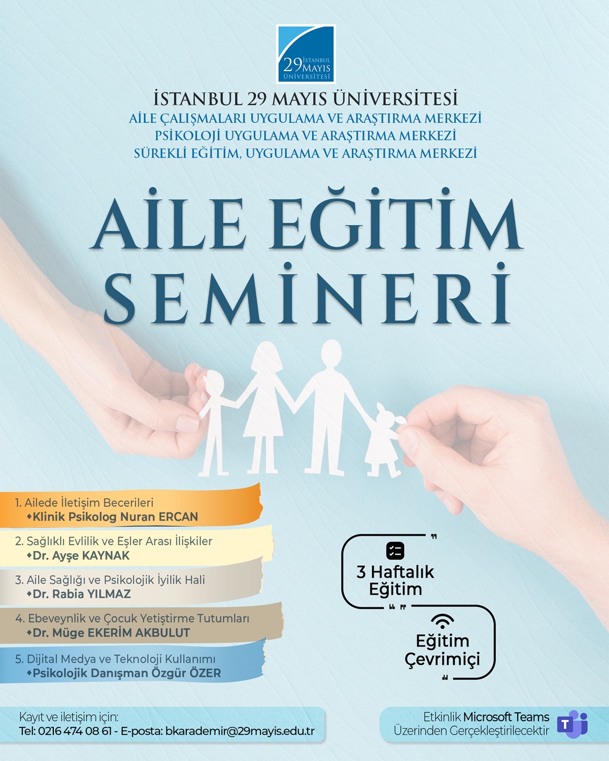* Çevrimiçi Aile Seminerleri- 3 haftalık Eğitim Programı